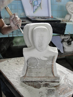 el primer paso para realizar el tallado de la escultura en yeso es dibujar en el bloque para luego empezar a dar la forma siguiendo las lineas trazadas, de esta manera podemos ir tallando sin ningún problema nuetra escultura.